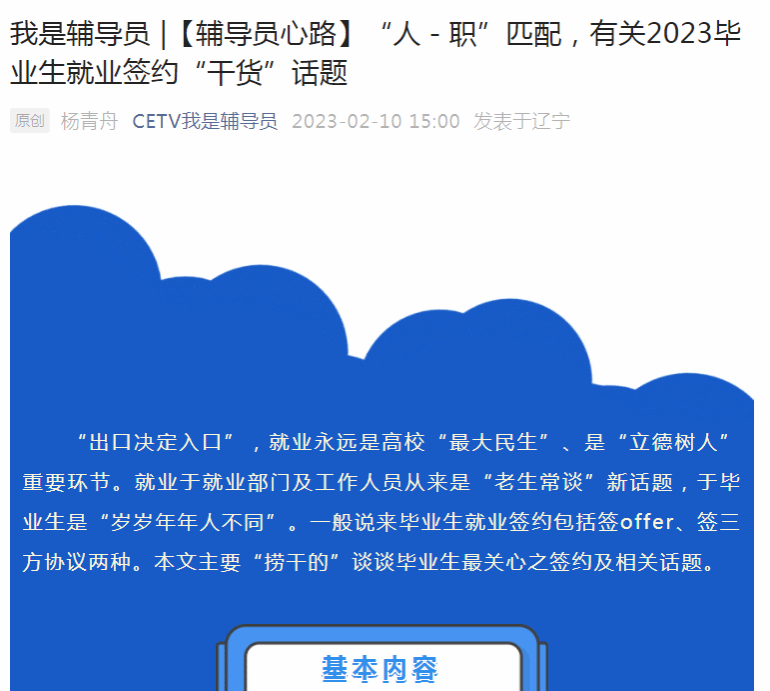 CETV我是辅导员:我是辅导员 |【辅导员心路】“人-职”匹配,有关2023毕业生就业签约“干货”话题